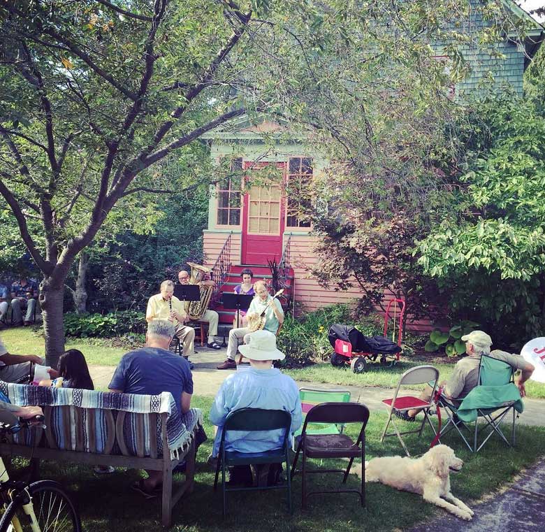 The maps quickly migrated to Google and the signups are hosted online, but the basic Porchfest idea has not changed. People organize their own venues and acts. The central Porchfest team schedules when the performers will play—no easy feat with 181 acts, and some people perform multiple times—prints t-shirts, plans for bathroom availability and extra police coverage (on bicycle), and attends to a hundred other details.