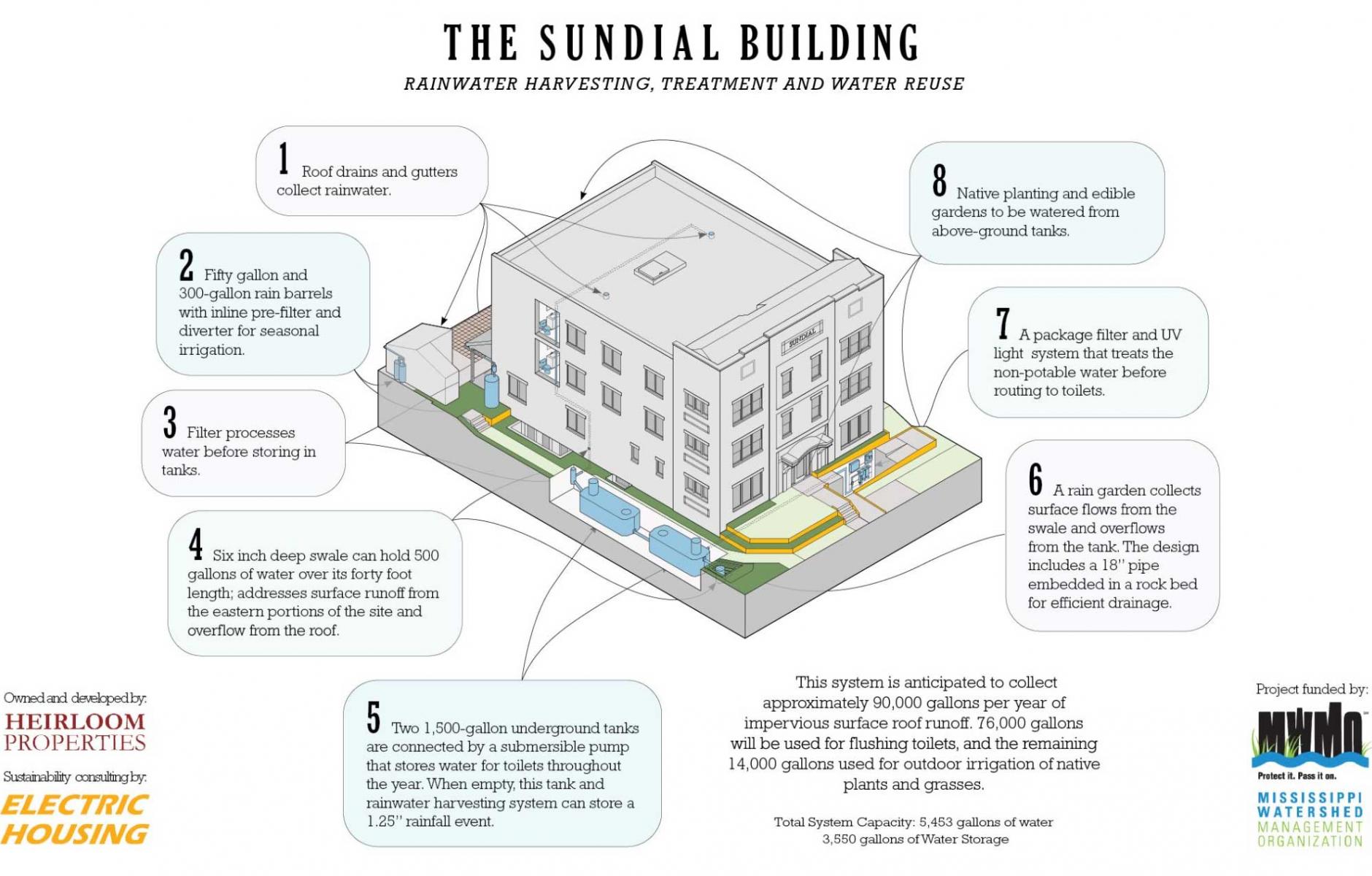The Mississippi Watershed Management Organization funded all of the underground rain and ground water storage infrastructure on the outside of the building.