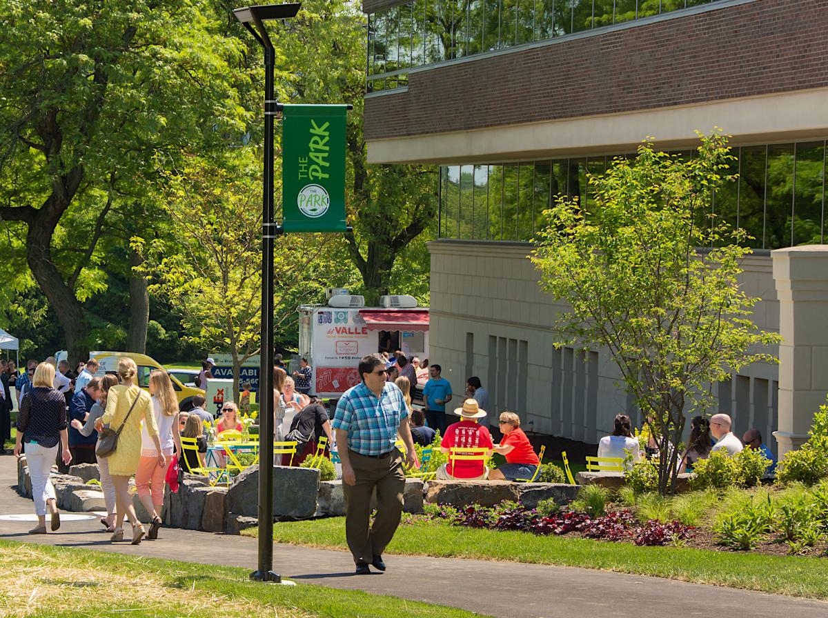 Also, a formerly single-use business park to the north of the mall, Moore Park, received zoning approval to become a mixed-use district. In that area, the King of Prussia District has built the First Avenue Linear Park, a landscaped pedestrian route about a mile and a half long, connecting 15 separate large properties, Barnett reports. That’s the first step in creating multimodal access in an area that was planned entirely for automotive travel.