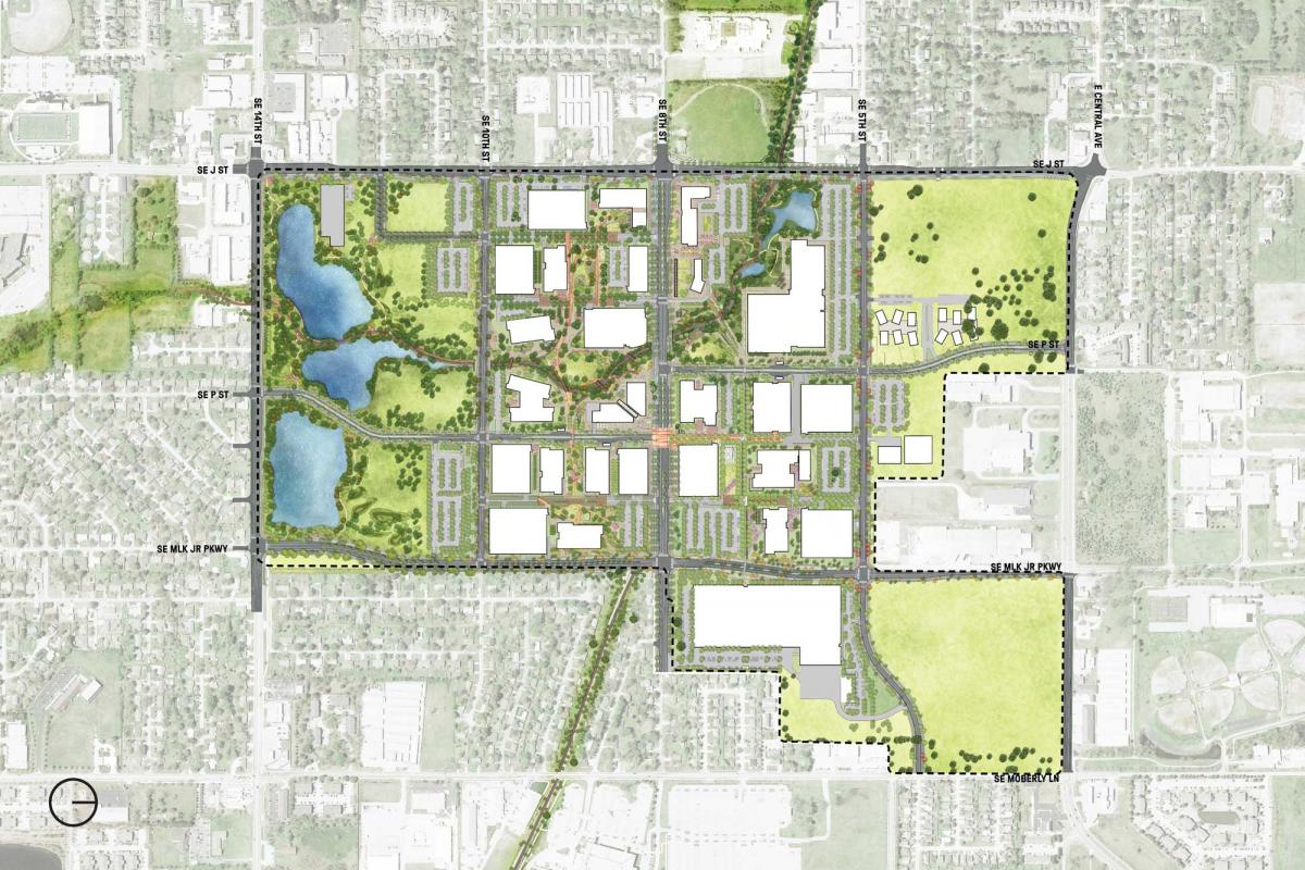 - Integrate a large single-tenant campus into Bentonville’s street grid;