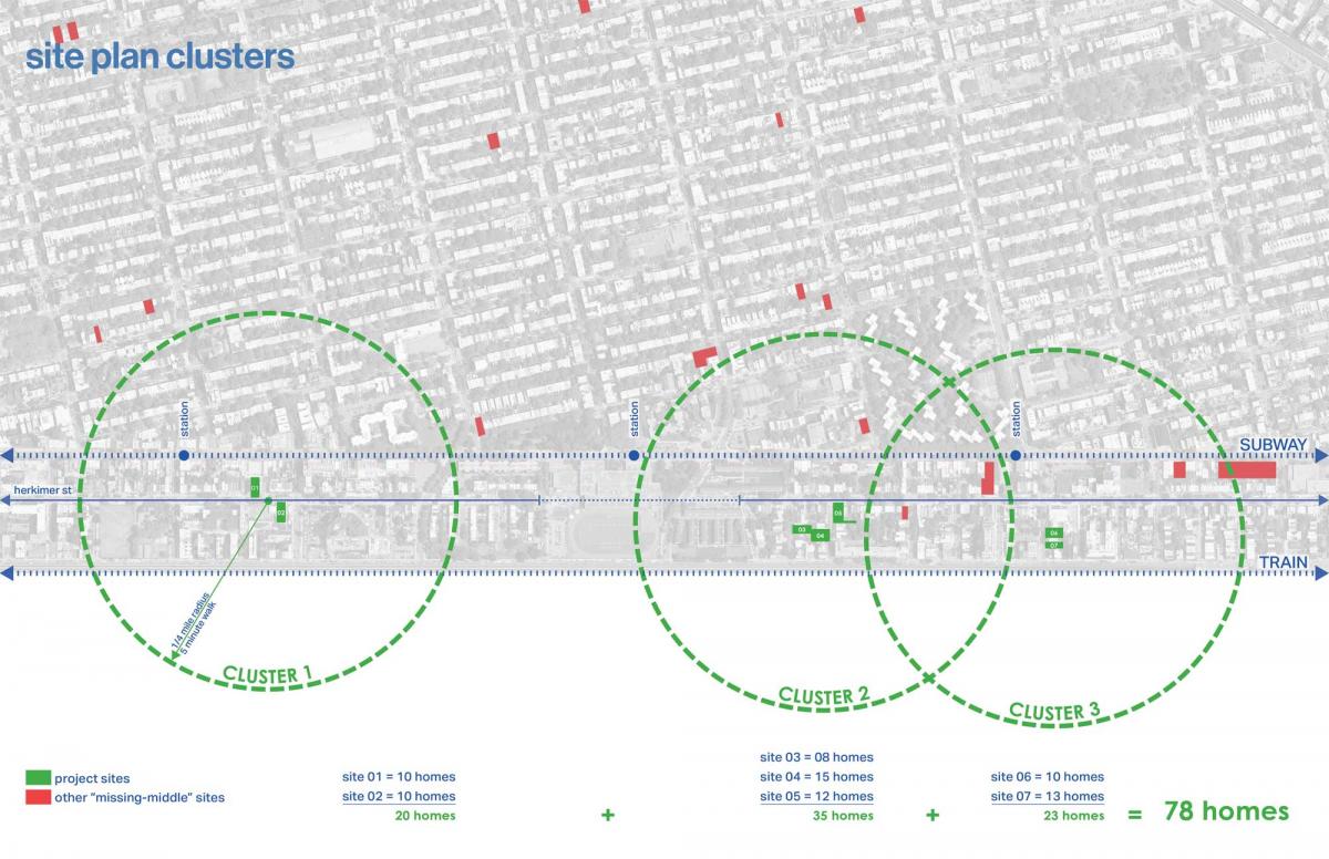 The 78 one- and two-bedroom apartments are located on sites totaling 0.73 acres in the Bedford Stuyvesant neighborhood. Subway and elevated regional rail both serve the neighborhood, enabling car-free or car-light lifestyles. Buildings occupy formerly vacant lots owned by the NYC Department of Housing Preservation and Development. Belle Gardens addresses a gap in the borough’s affordable housing programs: Most affordable housing in Brooklyn is rental. These units are all being sold—purchased by first-time home buyers.