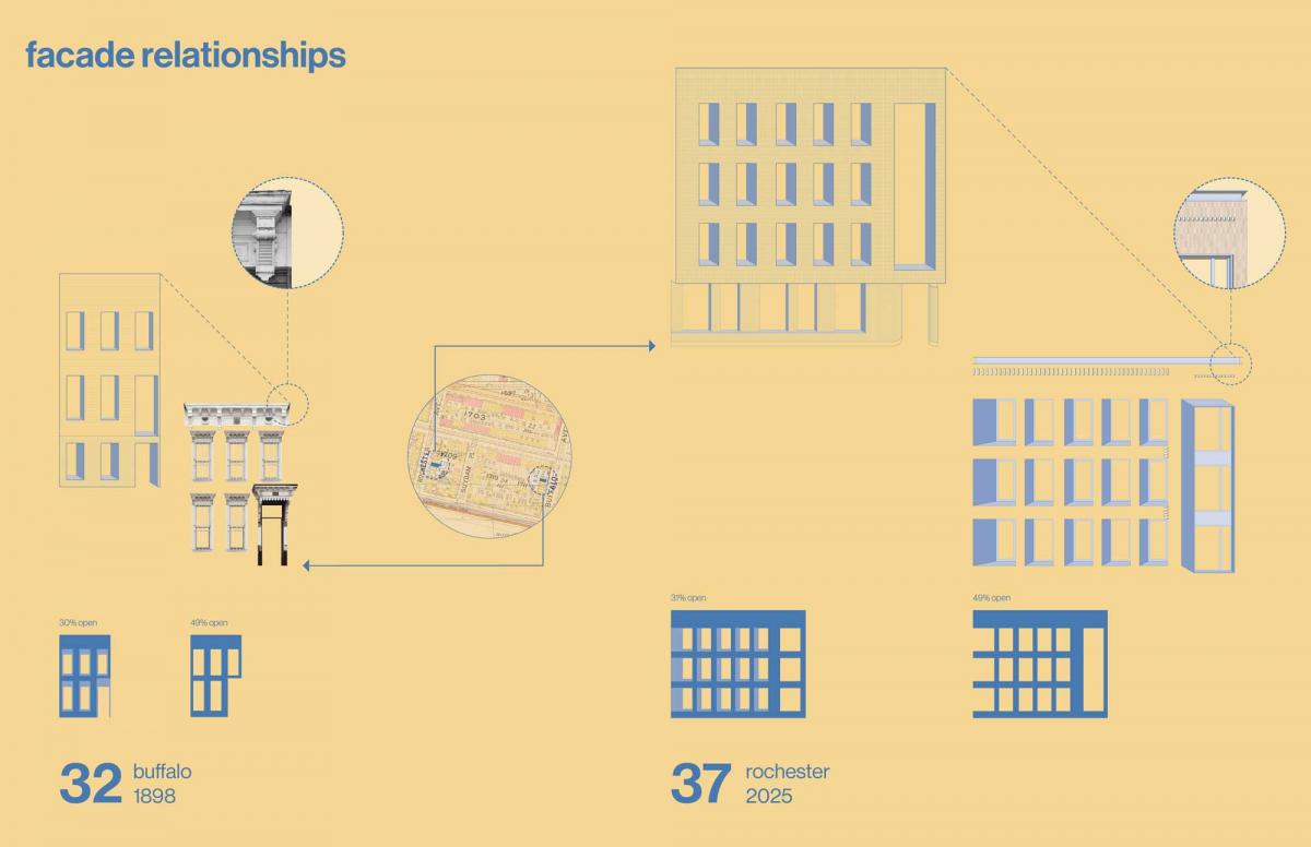 The designers sought creative ways to cut costs—foundations were important. By limiting foundation work near existing buildings, the project avoids the legal and financial difficulties of underpinning neighboring structures. Careful foundation design simplifies procedures and saves money, according to the architects.